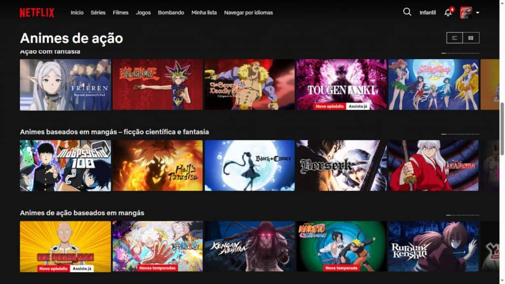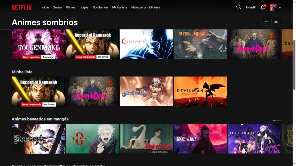 Este é o código mais amplo para explorar o catálogo. Ele reúne filmes, séries, OVA e produções clássicas ou recentes reunidas em uma única seção. É ideal para quem quer navegar por diferentes estilos e descobrir novidades ou títulos que não aparecem no feed inicial.