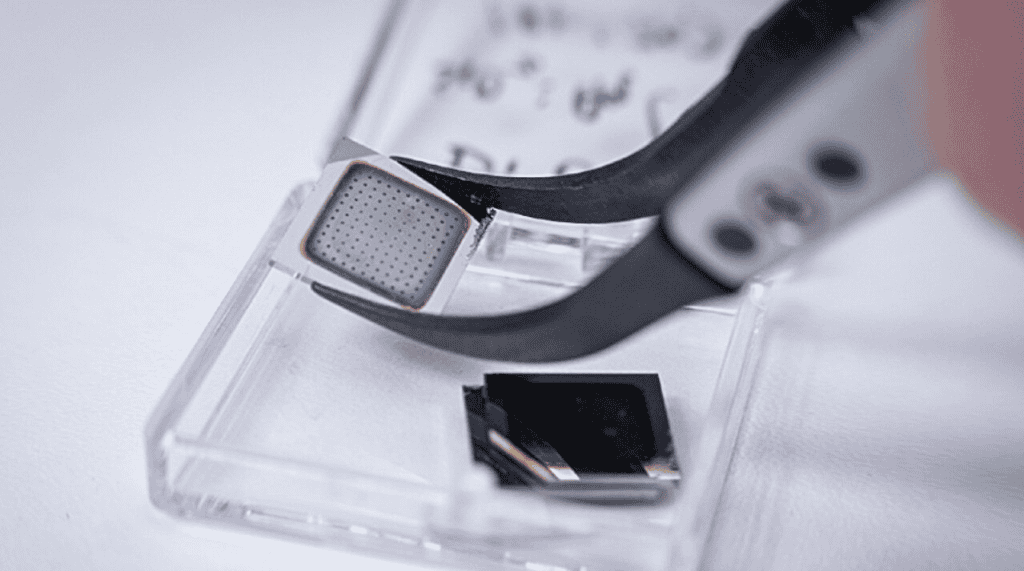 - Essa flexibilidade é possível graças ao uso de memristores – componentes em nanoescala que mudam fisicamente conforme a eletricidade flui.