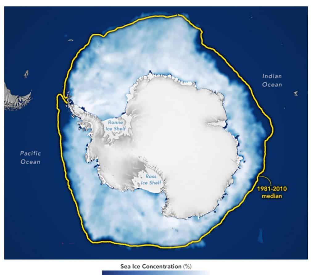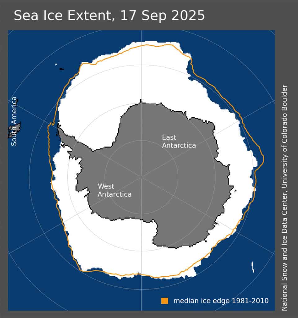 Com o fim do inverno de 2025 no Hemisfério Sul, o gelo marinho ao redor da Antártica voltou a se espalhar pelo oceano. Mas, apesar dessa expansão típica da estação, imagens de satélite mostram que a área congelada ficou muito menor do que o normal para essa época do ano. O gelo atingiu sua maior extensão anual em 17 de setembro, mas os valores continuaram abaixo do esperado.