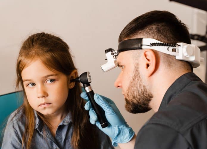 O diagnóstico é feito através da otoscopia, aquele exame em que o médico usa um aparelho com luz para “espiar” dentro do seu ouvido e verificar se o tímpano está vermelho ou abaulado.