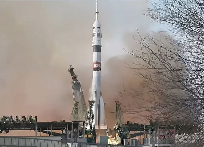 - Nova missão é lançada levando um astronauta da NASA e dois cosmonautas da Roscosmos à Estação Espacial Internacional;
