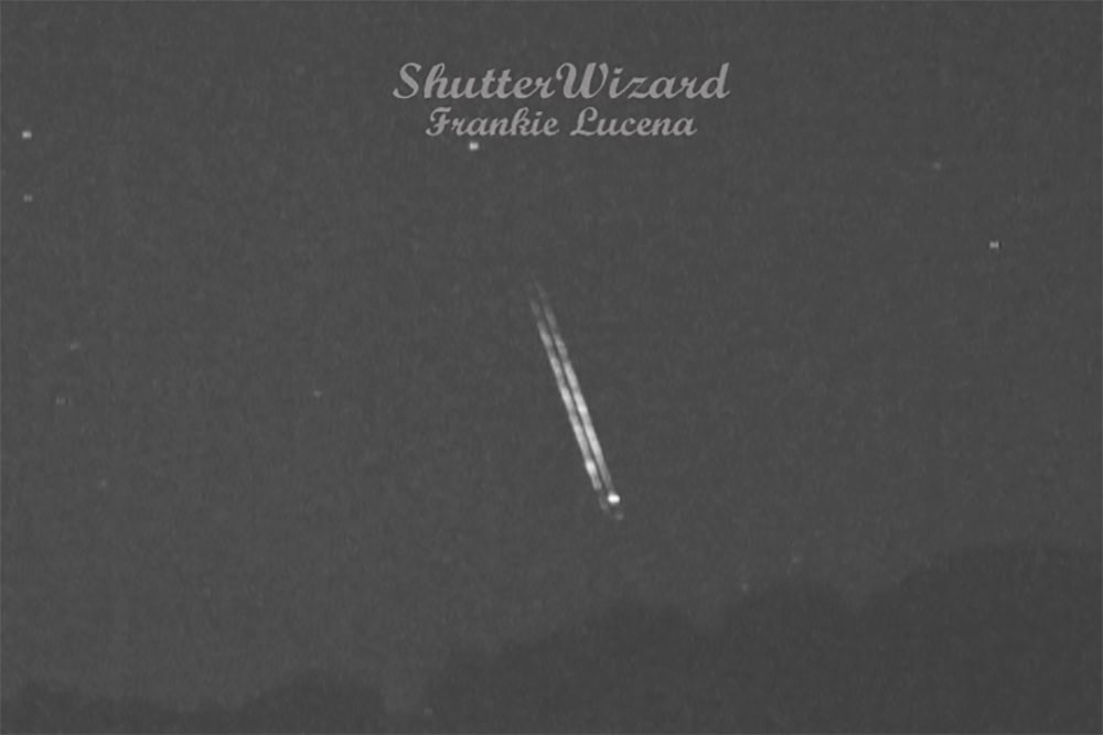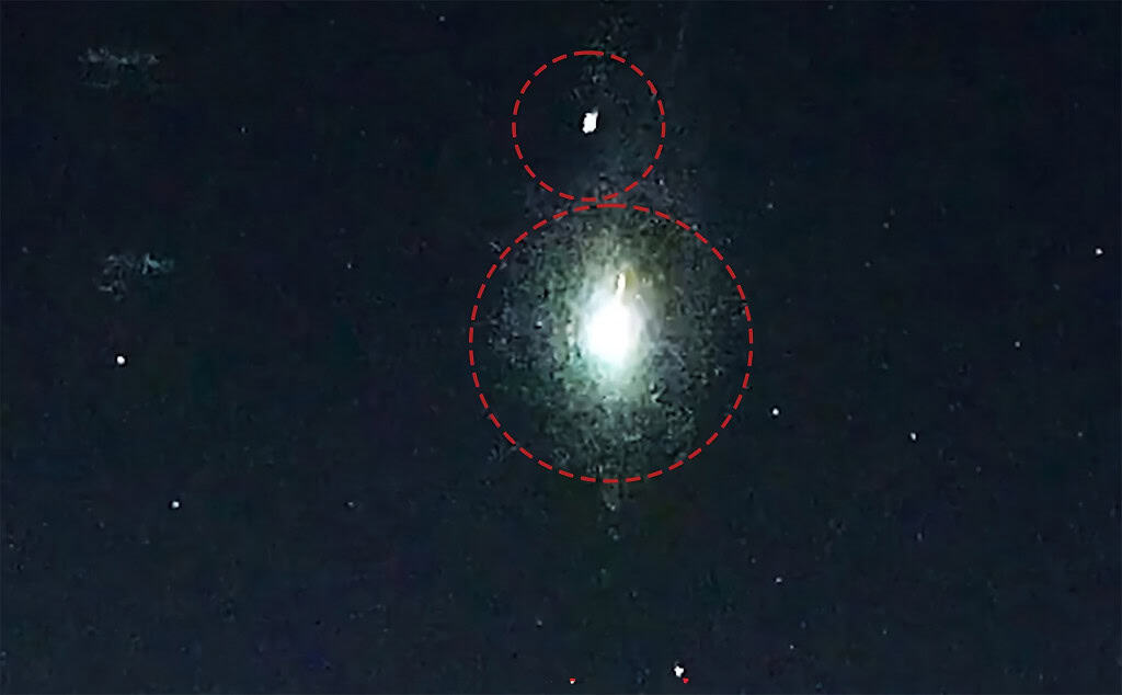 A imagem mostra duas luzes seguindo praticamente lado a lado, até desaparecerem quase ao mesmo tempo, o que levanta a dúvida: seriam meteoros “gêmeos” ou apenas uma coincidência visual?