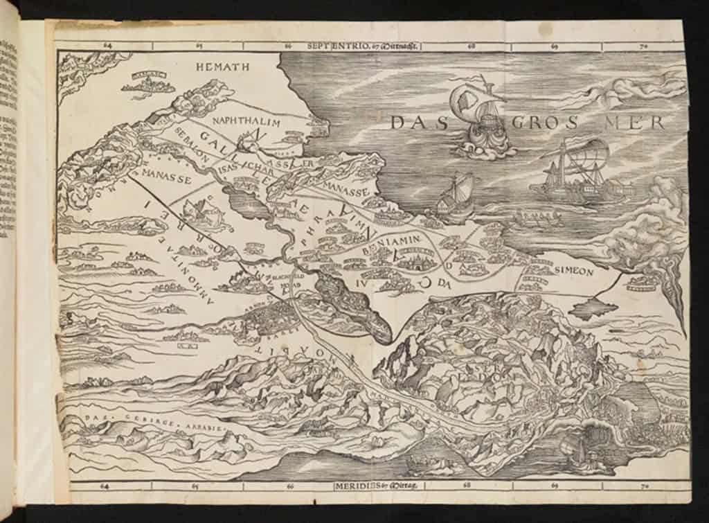 Um mapa da Terra Santa impresso na Bíblia há 500 anos, com o Mediterrâneo invertido, pode ter influenciado decisivamente a maneira como enxergamos o planeta hoje. A tese é do pesquisador Nathan MacDonald, professor de Interpretação do Antigo Testamento em Cambridge, que avaliou o papel de mapas bíblicos na formação das noções de fronteira e território.