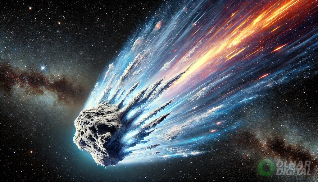 Esses criovulcões são comuns em corpos gelados, como os transnetunianos, nos quais o calor interno derrete o gelo e libera vapor e poeira no espaço. No caso do 3I/ATLAS, a atividade parece ser causada pela reação de materiais aprisionados no interior do cometa. À medida que o objeto se aquece, o dióxido de carbono sólido, conhecido como gelo seco, se transforma em gás. Isso permite que um líquido oxidante penetre em seu interior e reaja com metais como ferro, níquel e sulfetos, produzindo os jatos de criovulcão observados.