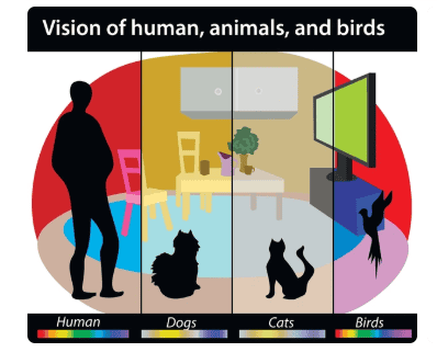 A diferença entre humanos e animais com visão ultravioleta se deve principalmente pelo processo evolutivo. Espécies como aves, peixes, insetos e répteis mantiveram fotorreceptores sensíveis a comprimentos de onda curtos porque isso lhes ofereceu vantagens ecológicas. Aves, por exemplo, conseguem identificar frutos maduros ou distinguir folhas jovens através de padrões refletidos em UV.