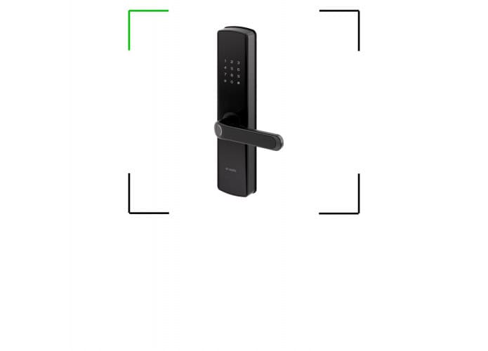 Este modelo é do tipo embutir, instalado diretamente na porta, e combina diferentes métodos de liberação. Entre eles estão biometria, senha numérica, cartão RFID, chave mecânica e autenticação via aplicativo. A ideia é permitir que mais de um tipo de usuário utilize o método que considerar mais adequado.