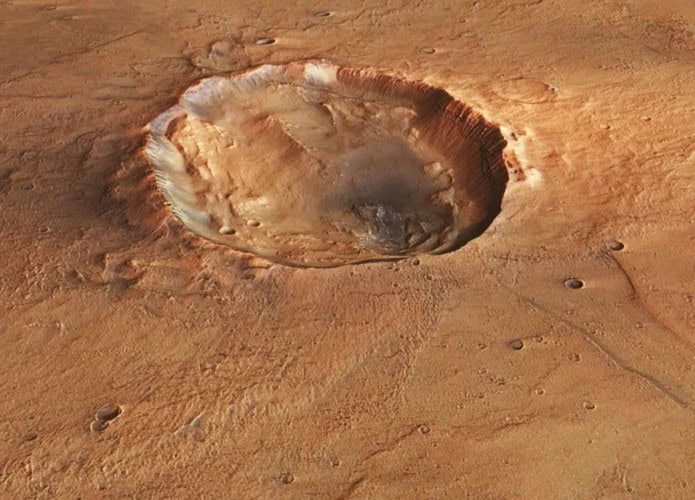 “As mesas se destacam claramente contra o entorno de cor castanha devido às camadas de material escuro que foram expostas em suas bordas”, disseram funcionários da ESA em comunicado. “Assim como na Terra , esse material provavelmente é rico em magnésio e ferro e foi criado por vulcanismo . Essa região provavelmente presenciou bastante vulcanismo no passado, com depósitos de lava e cinzas se acumulando ao longo do tempo e sendo soterrados por outros materiais ao longo dos anos.”