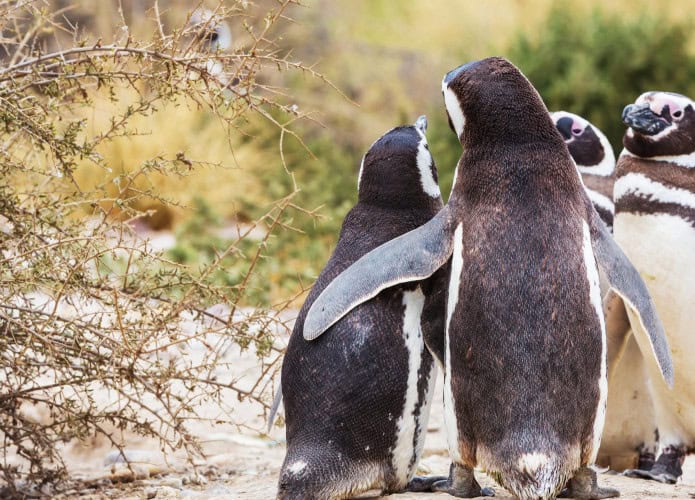 Talvez os ícones mais famosos dos casais do mesmo sexo na natureza, os pinguins frequentemente formam pares duradouros entre machos ou entre fêmeas. O caso mais icônico ocorreu no zoológico do Central Park, em Nova York, onde dois pinguins-de-barbicha chamados Roy e Silo formaram um casal, construíram um ninho e chocaram um ovo juntos.