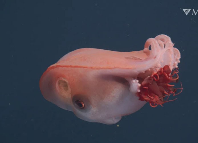 No registro mais recente, o animal aparece carregando uma medusa vermelha da espécie Periphylla periphylla, comportamento que já havia sido sugerido em estudos anteriores. A cena ajuda a confirmar que o polvo se alimenta de organismos gelatinosos, indicando que cadeias alimentares das águas profundas podem ser mais complexas do que se imaginava.