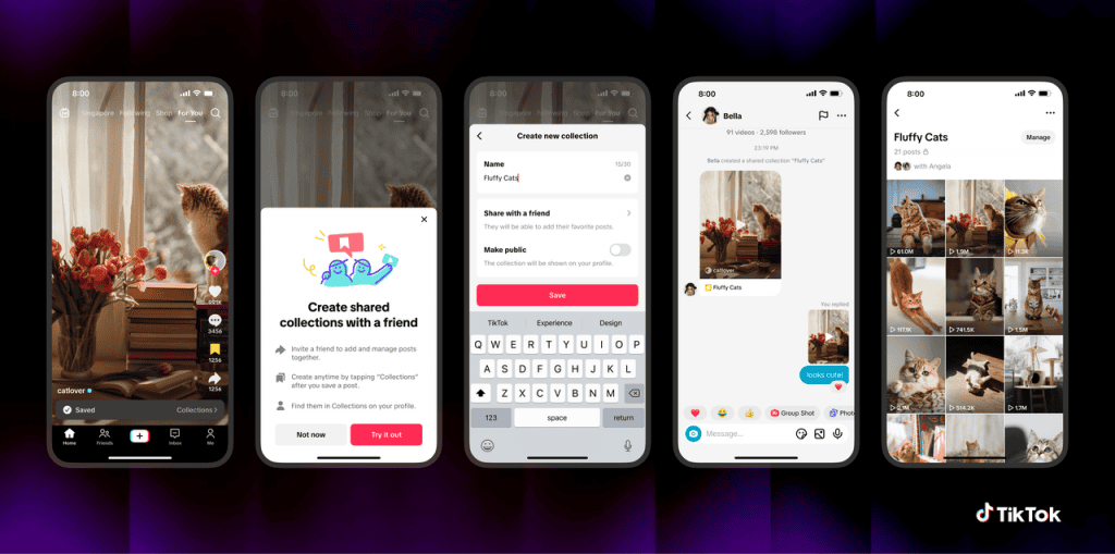 O TikTok anunciou nesta semana duas novas ferramentas voltadas para o compartilhamento e a organização de conteúdo dentro da plataforma.