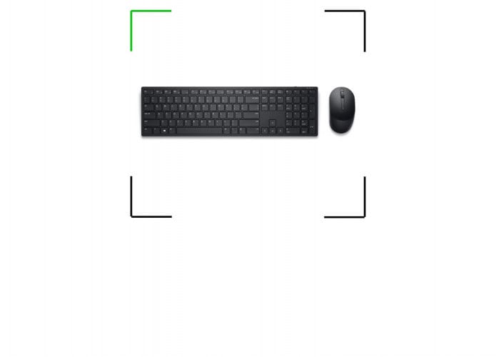 O pacote Dell Pro KM5221W inclui um teclado em tamanho tradicional e um mouse compacto, ambos com conexão sem fio. A conexão acontece por meio de um receptor USB que acompanha o kit e funciona em 2,4 GHz.