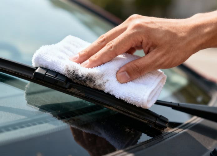 - Passe o pano úmido ao longo de toda a borracha da palheta.