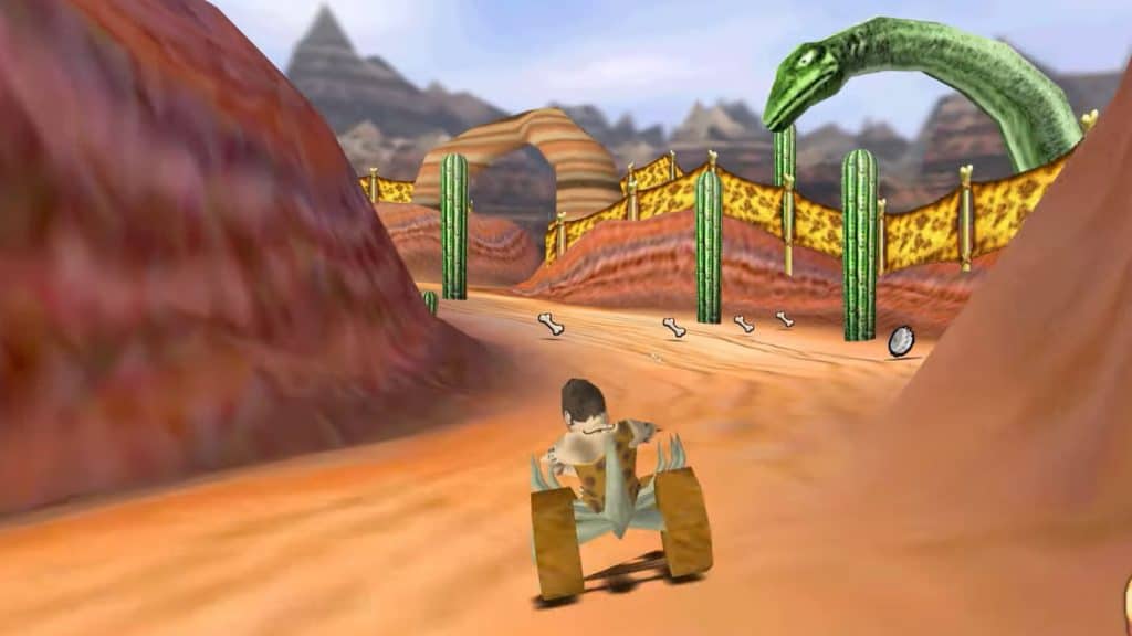 Sabia que existe um “Mario Kart” da Idade da Pedra? “Cro-Mag Rally” traz homens das cavernas em carros feitos de ossos, pedra e madeira, usando power-ups para vencer corridas.