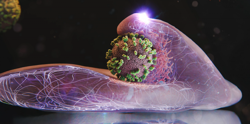 Transmitido por gotículas microscópicas no ar, o vírus entra no organismo e usa proteínas específicas para ultrapassar as defesas celulares. Agora, graças a uma nova técnica de imagem, cientistas conseguiram observar esse processo com um nível de detalhe inédito — e em tempo real.