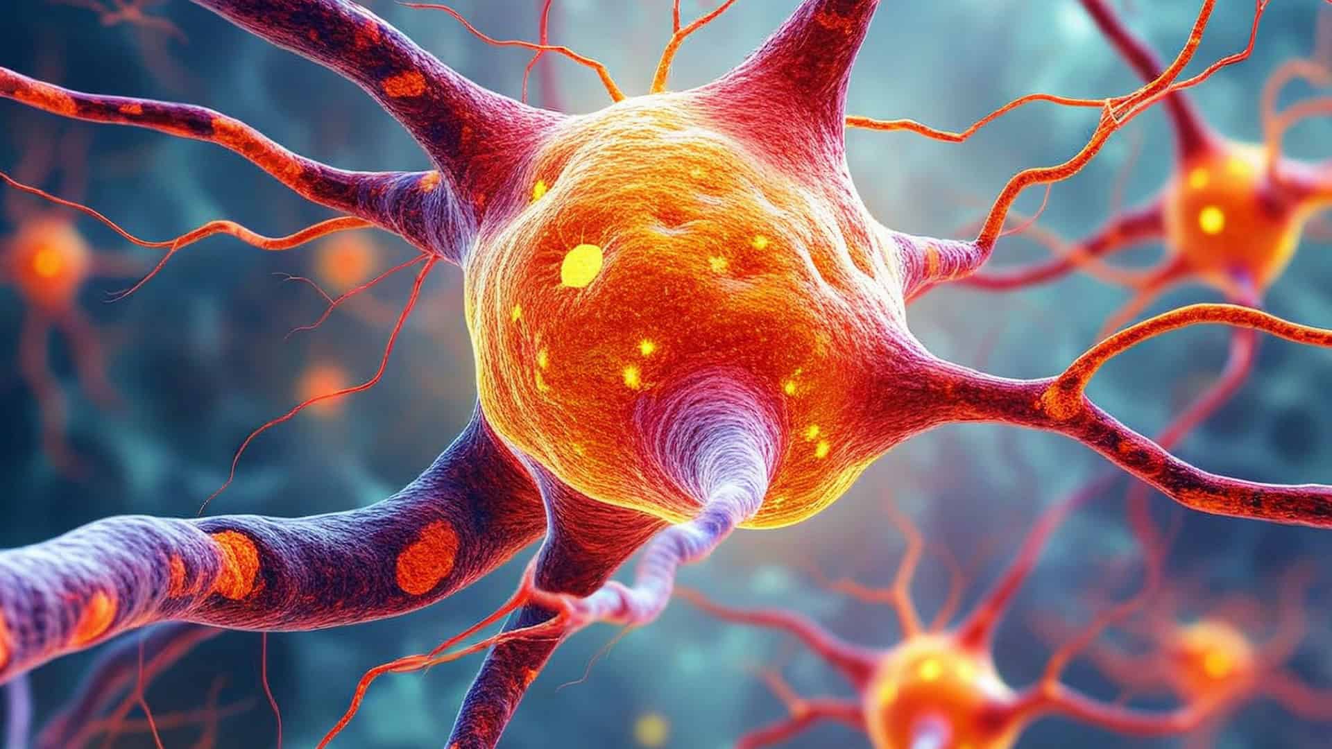 A mielina – uma camada gordurosa que envolve e protege as fibras nervosas, funcionando como o isolamento de um fio elétrico – é a primeira a apresentar danos. Em seguida, surgem lesões nos axônios, responsáveis pela transmissão dos impulsos nervosos, e, mais tarde, alterações nas células de suporte do cérebro.