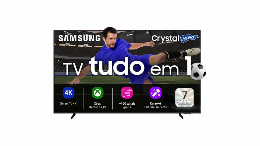 A Smart TV Samsung Crystal de 55 polegadas oferece resolução 4K e painel LED com tecnologia Crystal. O modelo é compatível com HDR e traz sistema operacional próprio da Samsung para acesso a aplicativos de streaming. A TV conta com conexões HDMI, USB, Wi-Fi e Bluetooth, além de suporte a assistentes virtuais.