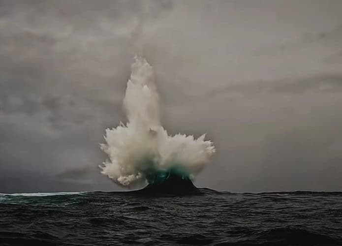 Imagine estar surfando ou aproveitando um dia no mar quando uma onda explode no céu, lançando água a metros de altura. Foi isso que dois amigos presenciaram – e filmaram.