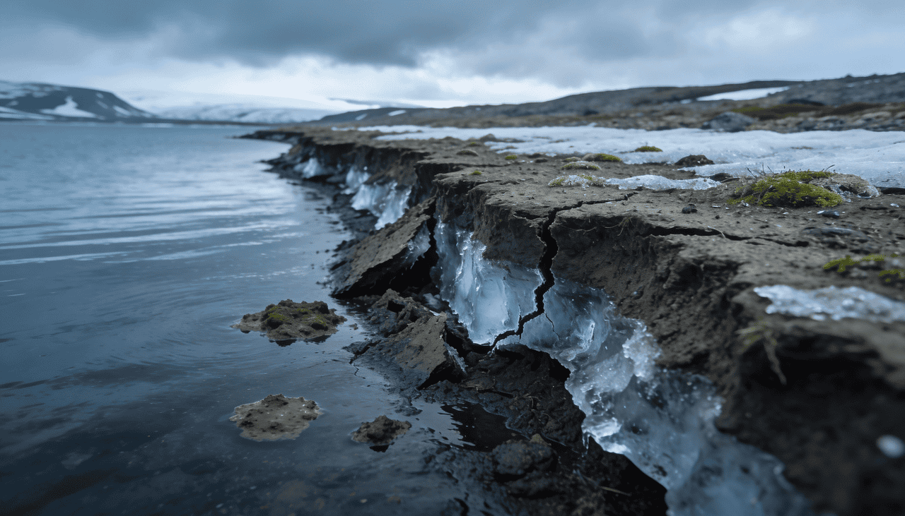 🌡️ Aquecimento do soloO aumento da temperatura média enfraquece a camada de gelo subterrânea.