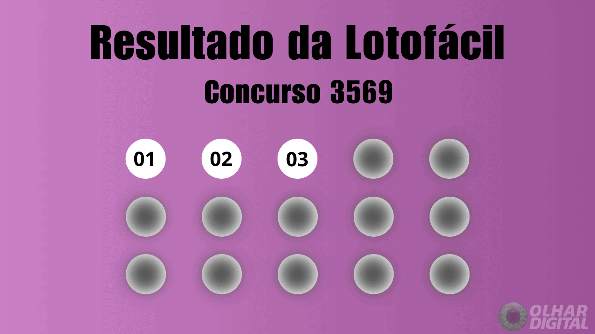 Os números sorteados da Lotofácil 3569 foram: 01 – 02 – 03 – 04 – 05 – 06 – 08 – 10 – 14 – 15 – 17 – 18 – 19 – 20 – 24.