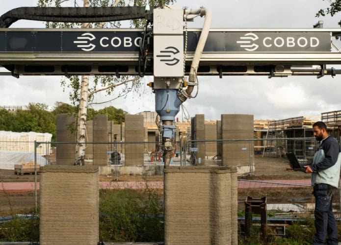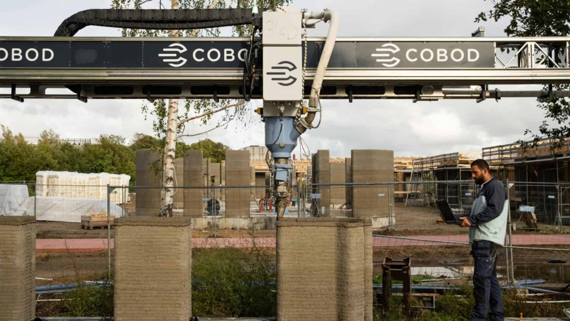 - A construção utiliza a impressora COBOD BOD3, um modelo avançado de máquina que deposita uma mistura parecida com concreto camada por camada para criar as paredes e a estrutura principal dos apartamentos diretamente no canteiro de obras;