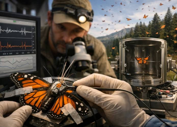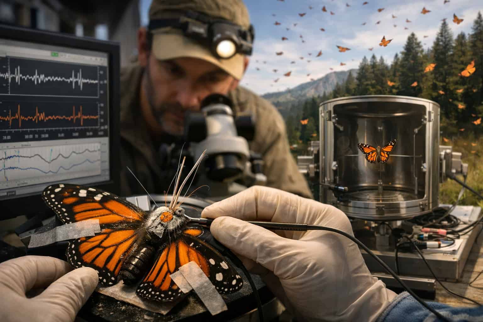 Para investigar esse mecanismo, o neurobiólogo Robin Grob, da Universidade Norueguesa de Ciência e Tecnologia, realiza um experimento extremo: inserir eletrodos ultrafinos diretamente no cérebro da borboleta.