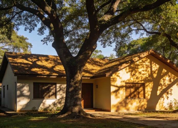 Para obter o máximo desempenho térmico, é ideal escolher espécies nativas com copas largas e folhagem densa. Posicioná-las nos lados leste e oeste da casa ajuda a bloquear o sol da manhã e da tarde, que são os períodos de maior incidência de calor nas paredes. Assim, você garante um ambiente interno muito mais equilibrado sem depender exclusivamente da tecnologia elétrica.