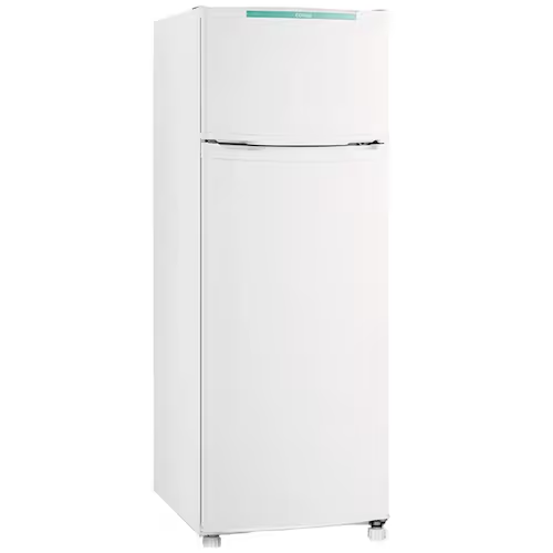 O modelo conta com degelo automático, prateleiras ajustáveis e compartimentos na porta que facilitam o armazenamento de garrafas e itens menores. A voltagem varia conforme a versão, sendo encontrada em 110V ou 220V, e o consumo de energia segue padrões econômicos para a categoria.