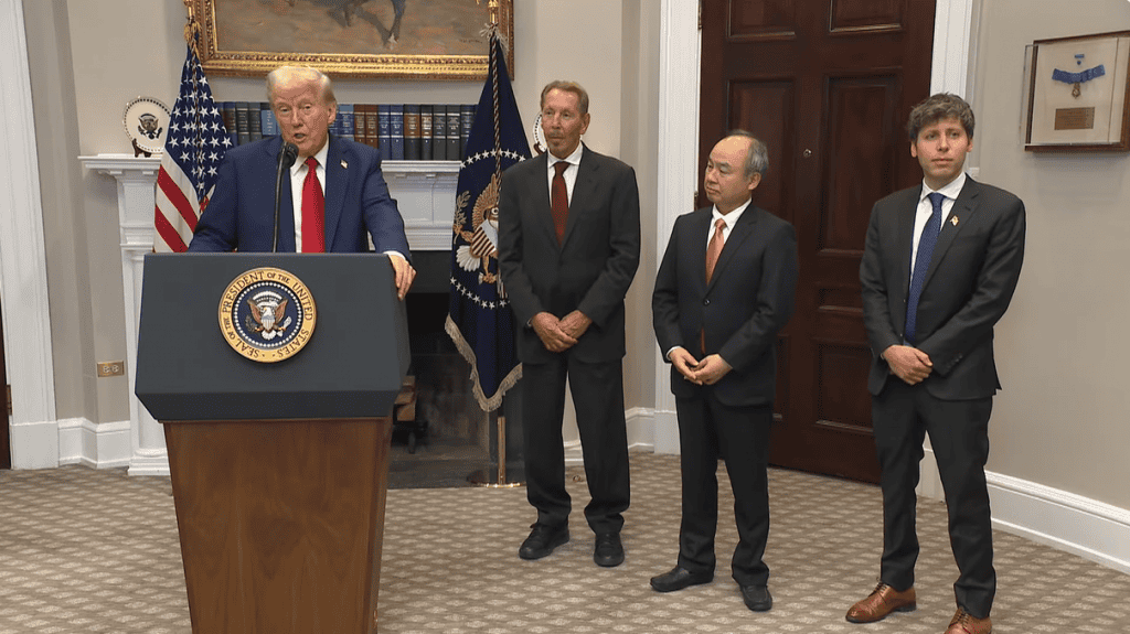 - No dia seguinte à posse presidencial, Ellison participou de um anúncio na Casa Branca ao lado de Donald Trump, Sam Altman (OpenAI) e Masayoshi Son (SoftBank). O grupo revelou o projeto “Stargate”, um plano de US$ 500 bilhões para infraestrutura de IA, prometendo a criação de 100 mil empregos.