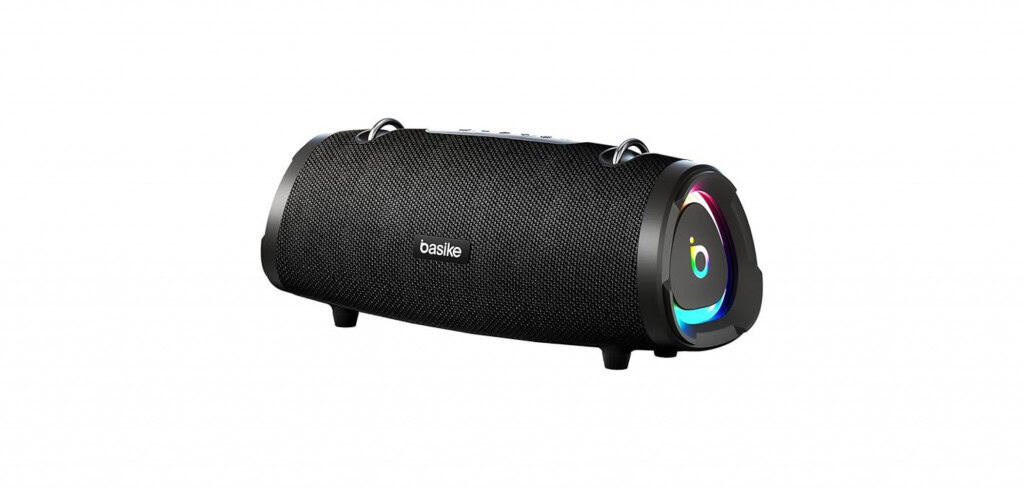 A caixa de som Bluetooth da Basike entrega potência sonora de 100W RMS, com pico de até 160W, voltada para reprodução de áudio em volumes mais altos. O modelo trabalha com conexão Bluetooth 5.3, permitindo emparelhamento estável com celulares, tablets e outros dispositivos.