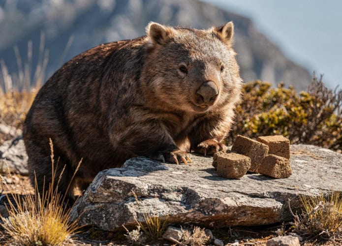 O vombate utiliza suas fezes como marcadores territoriais, depositando-as em locais estratégicos como troncos caídos e rochas proeminentes. Em terrenos inclinados, fezes arredondadas rolariam para longe, perdendo sua função de sinalizador olfativo para outros membros da espécie.