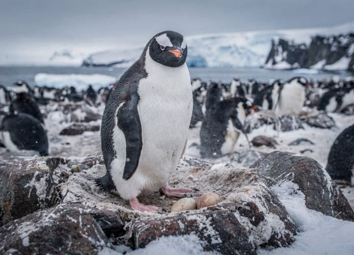 Vigilância ininterruptaO pinguim monitora o ninho contra predadores e vizinhos sem nunca entrar em sono profundo prolongado.