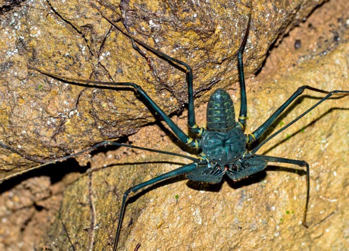 De acordo com o IFL Science, a característica mais marcante era um longo apêndice em forma de chicote na parte traseira, uma estrutura ausente em qualquer aranha conhecida hoje.