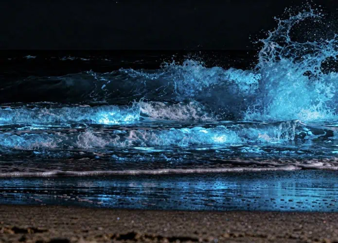Embora muitos animais marinhos maiores possuam essa habilidade, o brilho que vemos na arrebentação das ondas é geralmente causado por fitoplânctons minúsculos chamados dinoflagelados. Eles funcionam como sensores biológicos altamente eficientes.