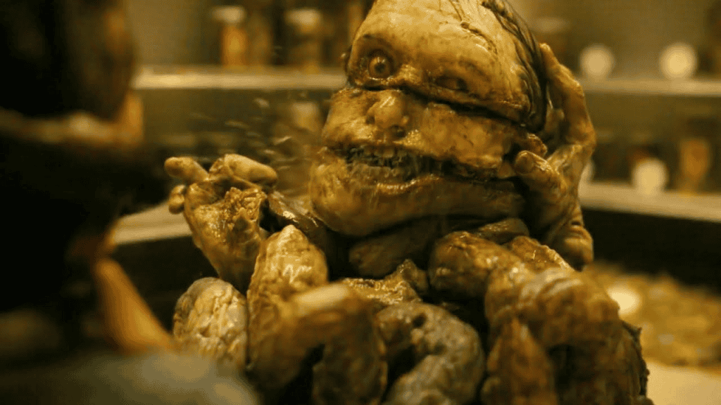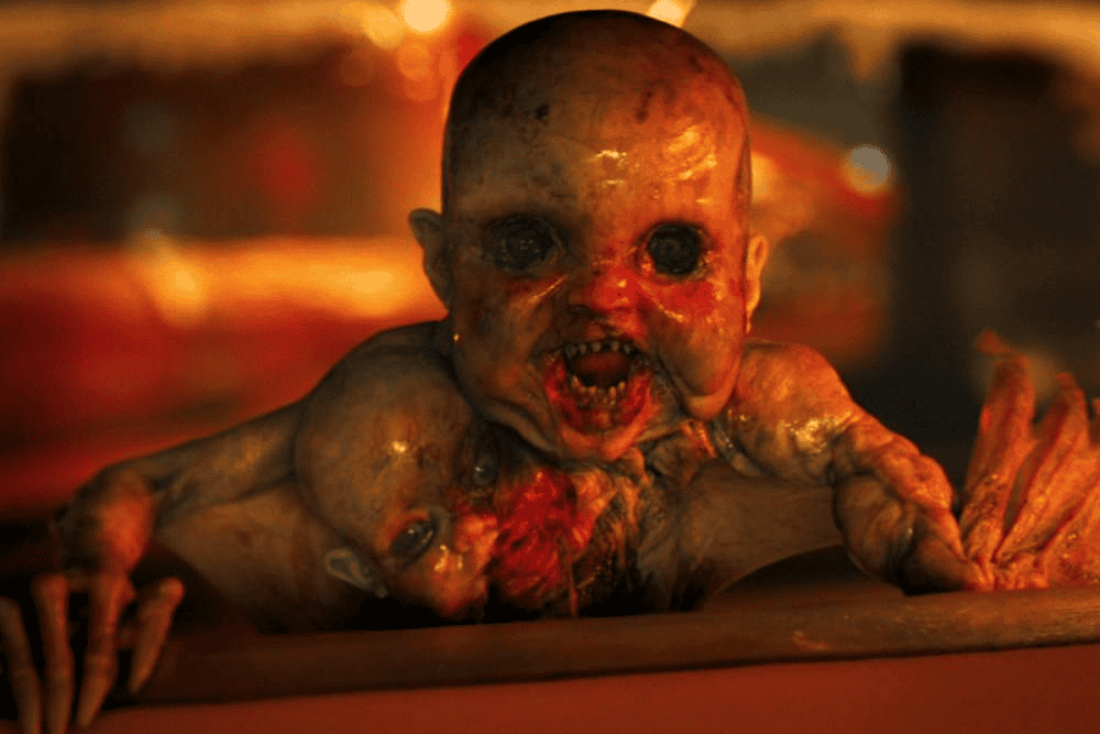 Aqui, a entidade explora o trauma de origem e o medo associado ao nascimento e à dor. A cena amplia o horror ao misturar vida, sofrimento e violência em um único momento simbólico.