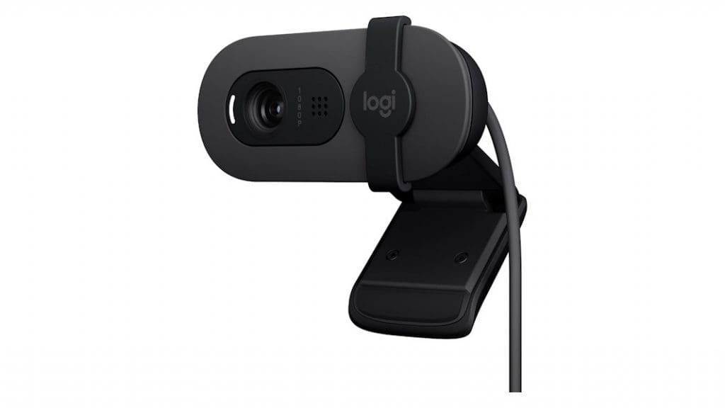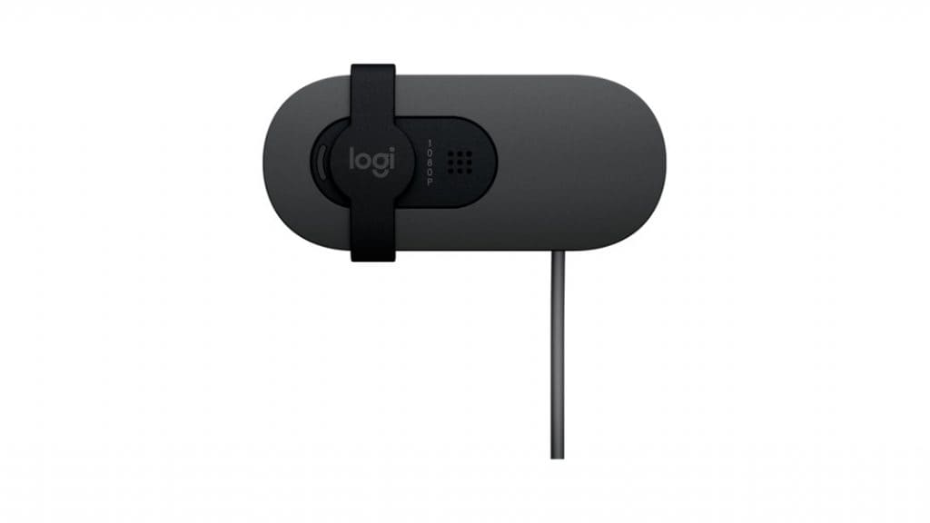 A Brio 100 traz um obturador físico de privacidade, que pode ser deslizado para cobrir a lente quando a câmera não está em uso. Esse recurso atua de forma mecânica, bloqueando a imagem sem depender de configurações do sistema ou de aplicativos.