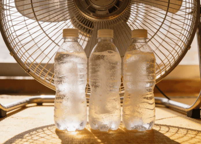 Em ondas de calor, muita gente recorre a soluções improvisadas para dormir melhor ou trabalhar com menos desconforto. O ventilador adaptado surge como alternativa barata, especialmente em casas sem climatização.