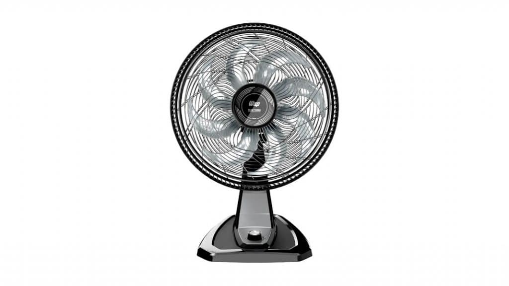 Ventilador com 8 pás e três níveis de velocidade para controle do fluxo de ar. O mesmo modelo pode ser usado tanto na parede quanto sobre mesas ou bancadas. O funcionamento é feito por controles manuais, sem recursos eletrônicos avançados, com ajuste direto da velocidade conforme a necessidade.