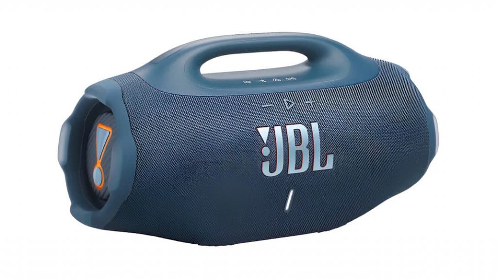 Nas conexões físicas, além da alimentação, a Boombox 4 permite reprodução de áudio digital via USB-C quando conectada a dispositivos compatíveis. O controle da reprodução e das funções básicas pode ser feito pelos botões no próprio aparelho ou pelo aplicativo da JBL.