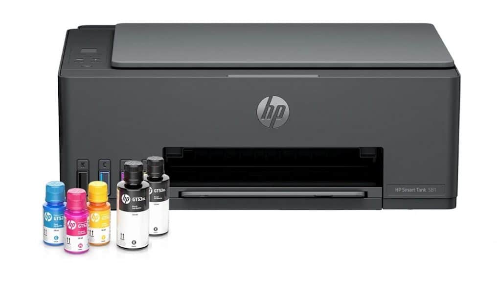 A HP Smart Tank 581 é uma multifuncional com sistema de tanque de tinta colorido, permitindo impressão, cópia e digitalização. O abastecimento é feito por frascos individuais de tinta. O modelo conta com Wi-Fi e USB para conexão, além de suporte ao aplicativo HP Smart para configuração e gerenciamento. É compatível com impressão colorida e monocromática em diferentes formatos de papel.