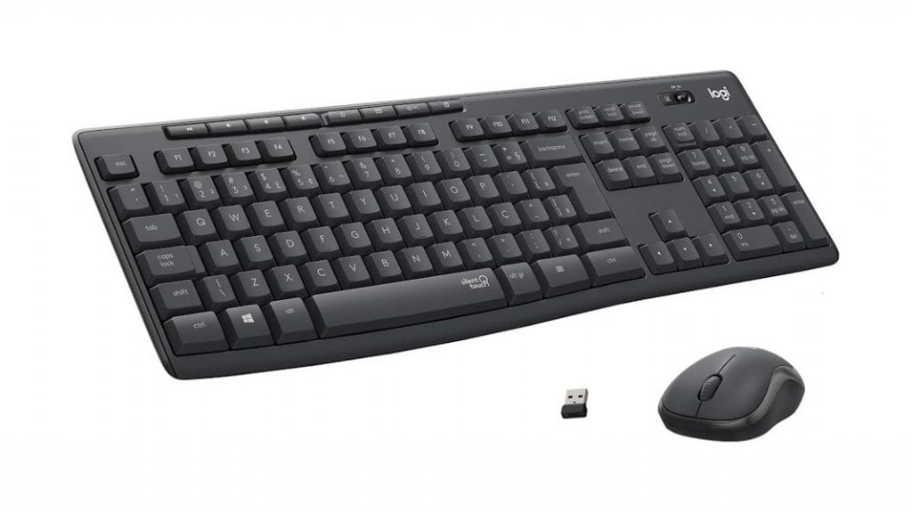 O combo Logitech MK295 inclui teclado e mouse sem fio, com foco em digitação e cliques silenciosos. A conexão é feita por receptor USB, sem necessidade de pareamento manual. O teclado traz layout ABNT2, teclas de mídia dedicadas e funcionamento por pilhas, que já acompanham o kit. O mouse segue o padrão compacto para uso geral.