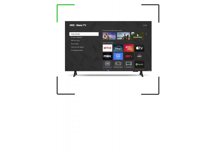 A Smart TV AOC de 43 polegadas modelo 43S5155/78G traz tela LED com resolução Full HD (1920 x 1080) e taxa de atualização de 60 Hz. O sistema operacional é o Roku TV, que oferece acesso aos principais serviços de streaming da atualidade.