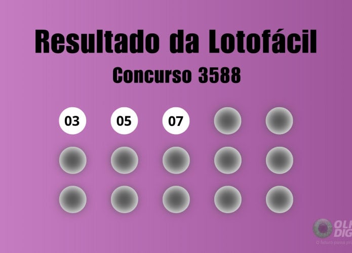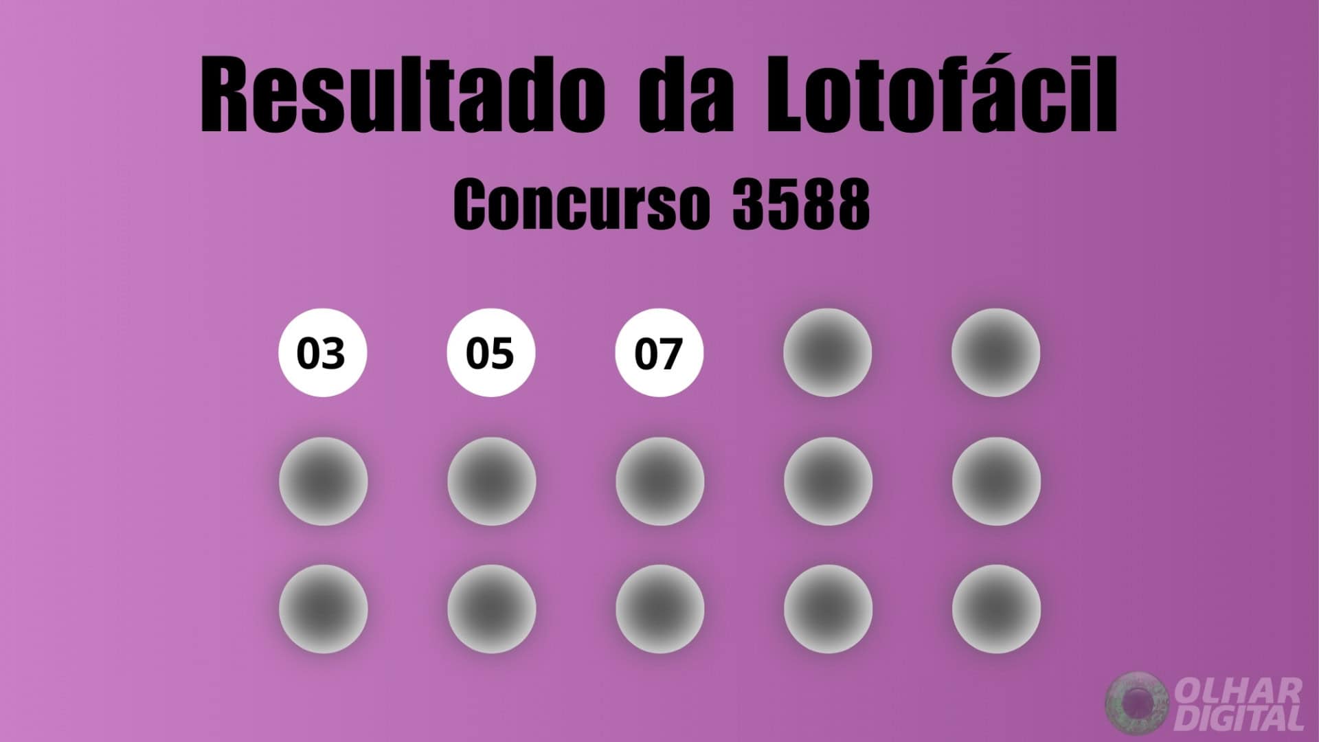 O sorteio do concurso 3588 da Lotofácil aconteceu na noite desta quinta-feira (15), às 21h. O prêmio desta loteria estava estimado em R$ 1,8 milhão.