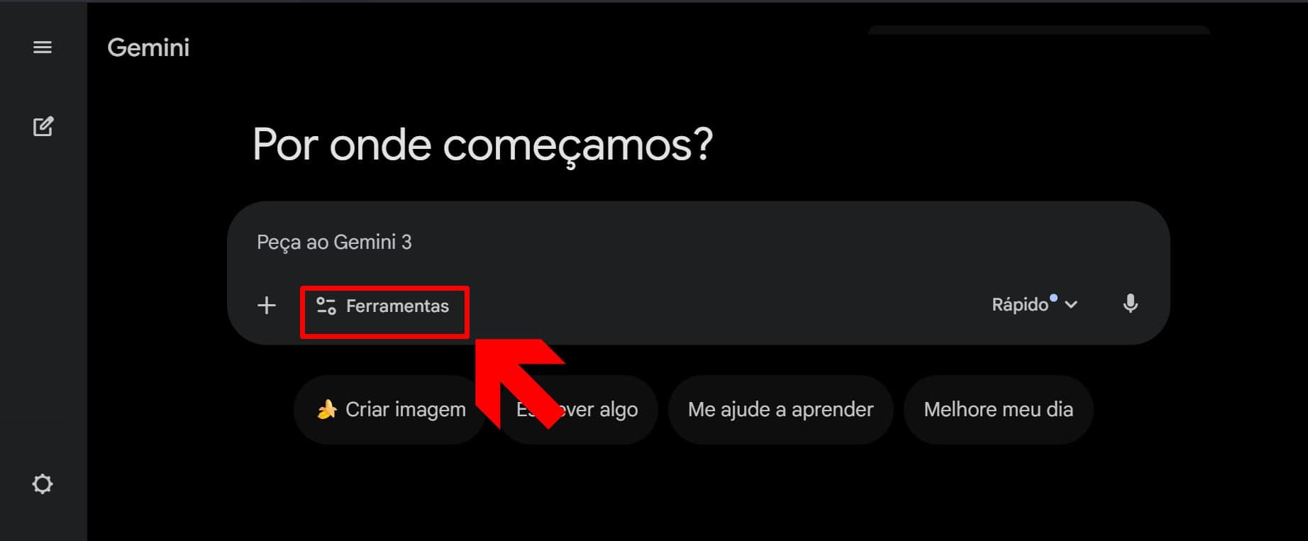 Na página inicial do chatbot, procure pelo botão Ferramentas e clique sobre ele para que o software mostre as aplicações disponíveis;