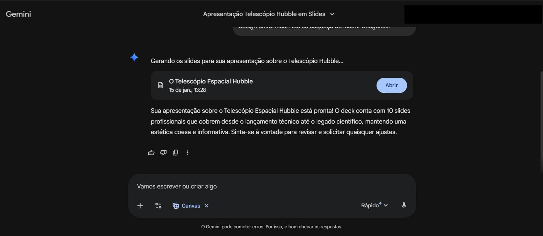 Como criar apresentações de slides completas no Gemini