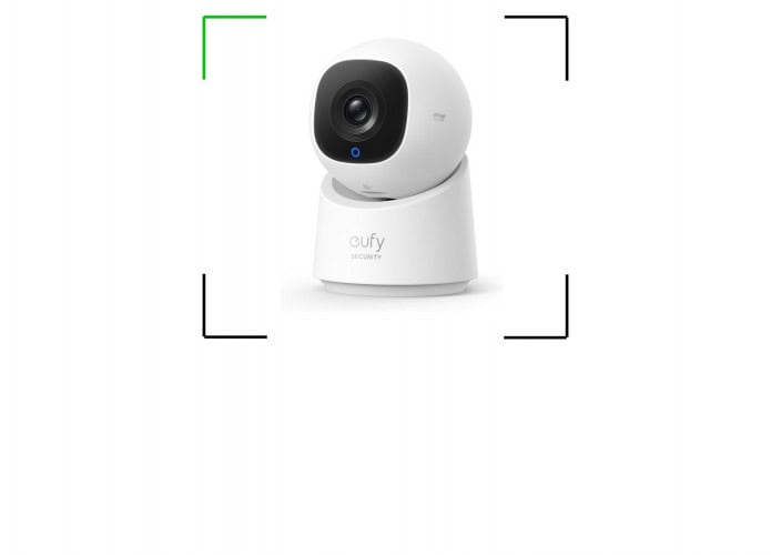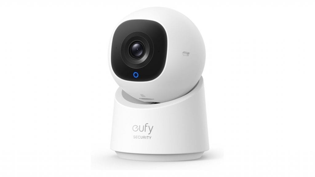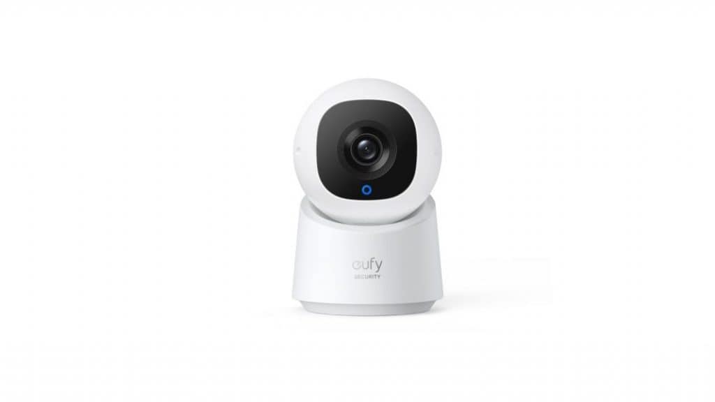 A eufy Security C220 grava imagens com resolução 2K e tem uma lente que gira 360º na horizontal, permitindo monitorar todo o ambiente. Ela conta com visão noturna integrada e se conecta à internet via Wi-Fi, enviando imagens em tempo real para o aplicativo no celular.