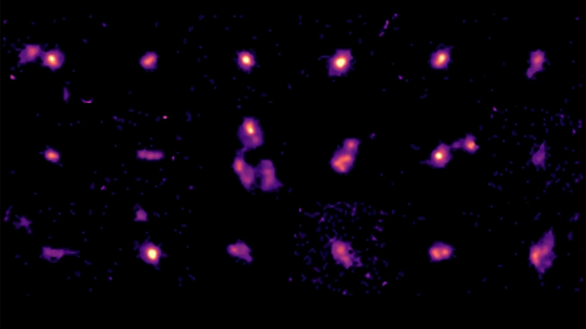 Combinando observações do Telescópio Espacial James Webb (JWST), do Telescópio Espacial Hubble e do conjunto de radiotelescópios ALMA, no Chile, os cientistas analisaram 18 galáxias situadas a cerca de 12,5 bilhões de anos-luz de distância, ou seja, que existiam pouco mais de um bilhão de anos após o Big Bang, em uma época na qual o cosmos ainda estava passando pelas primeiras etapas de formação. Nesse período, as galáxias estavam produzindo estrelas a um ritmo acelerado, o que favorecia um crescimento rápido.