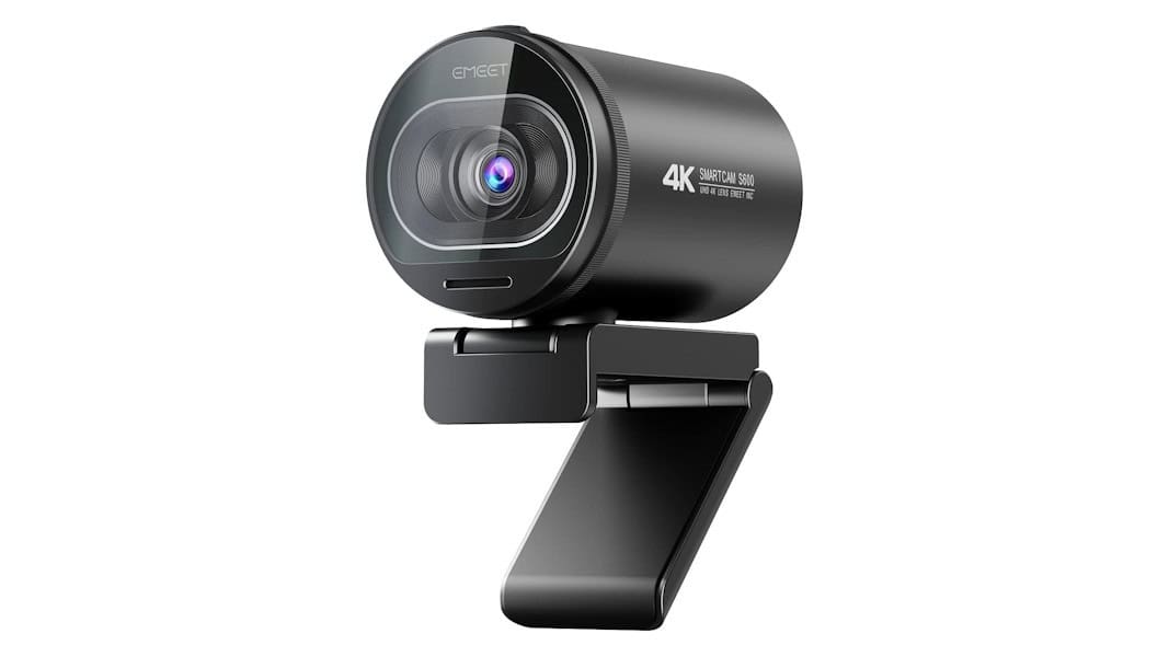 A webcam EMEET S600 grava e transmite imagens em resolução 4K a 30 fps ou em 1080p com 60 fps. Ela vem com foco automático e um sistema que equilibra a luz do ambiente por conta própria. A lente tem um ângulo de visão de 88 graus, o que garante um enquadramento aberto para quem está em frente ao monitor.