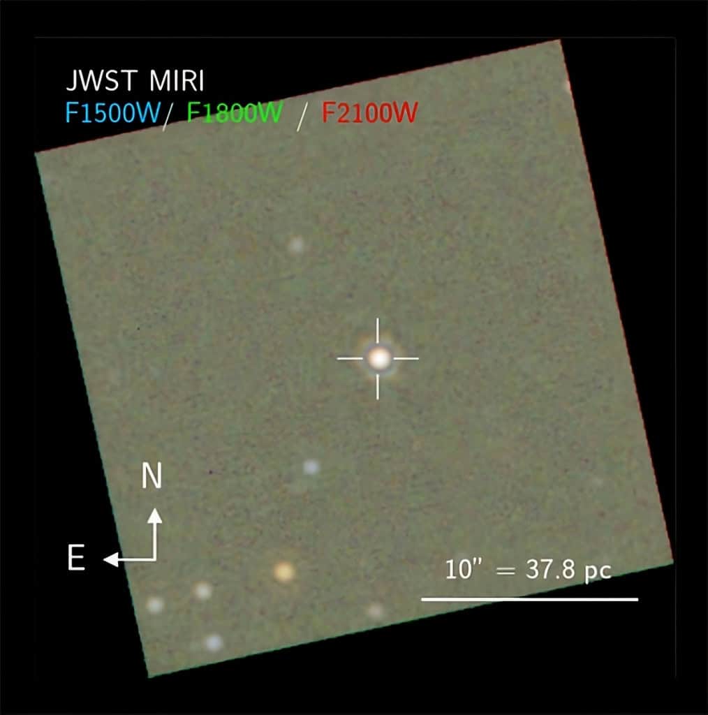 Usando dados do JWST e do Observatório de Raios X Chandra, também da NASA, essa equipe encontrou uma fonte extremamente avermelhada no local onde a estrela deveria estar. O brilho atual corresponde a apenas 7% ou 8% da luminosidade original. Além disso, há poeira ao redor da região, ocupando uma área estimada entre 40 e 200 unidades astronômicas.