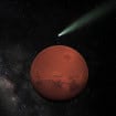 Representação artística do cometa interestelar 3I/ATLAS passando perto de Marte