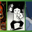 Montagem com frames três filmes: A Fuga das Galinhas, Persépolis e Princesa Mononoke